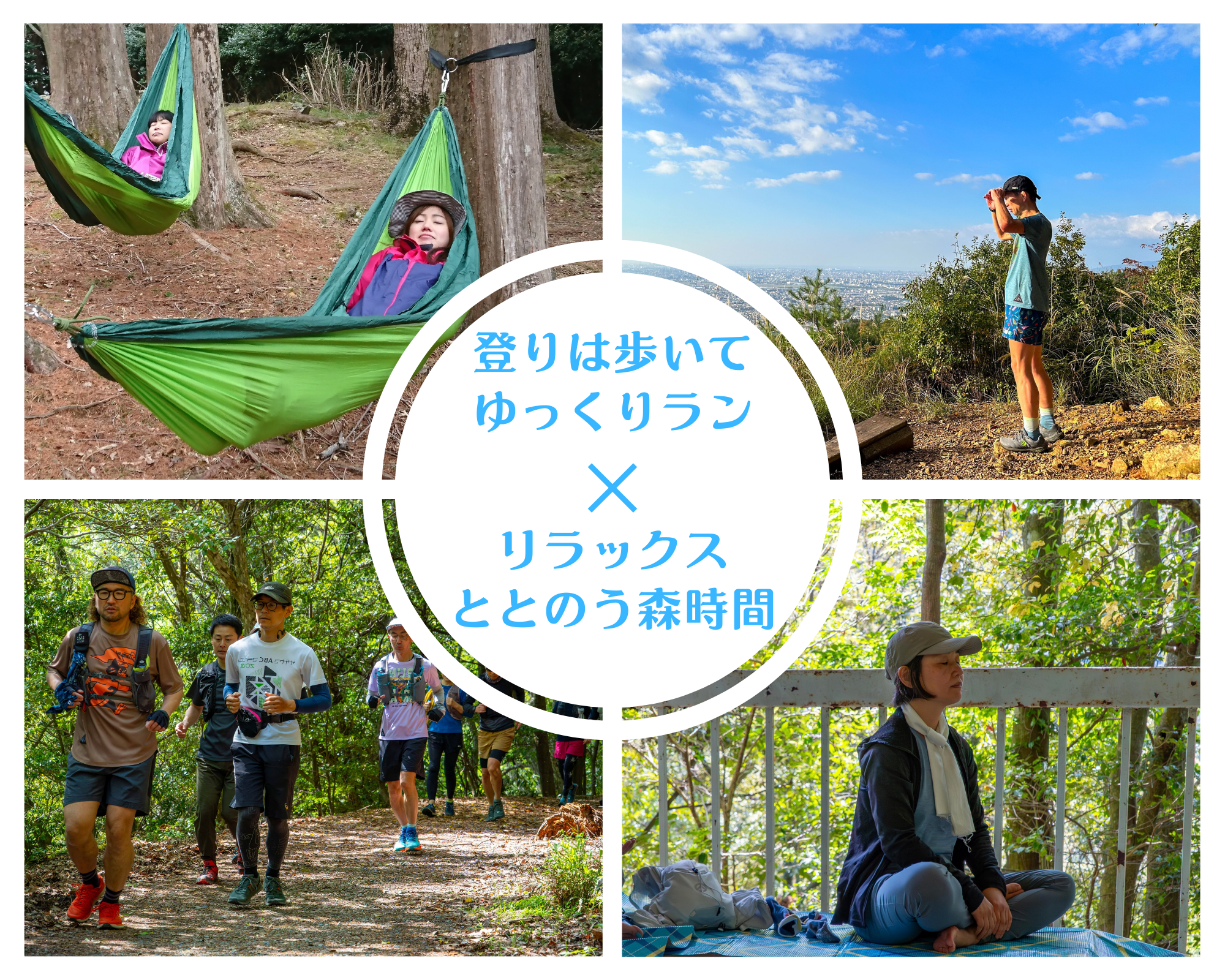 登りの山道は歩き、下りや心地いい散策路には走るコースを初心者向けガイド付きで走り、ランニングの後には、ご褒美タイムとしてハンモック体験・呼吸瞑想で森の中でリラックスタイムをお届けします。