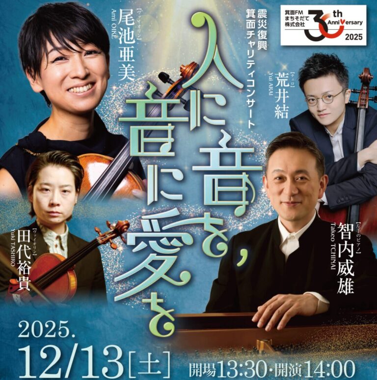 東日本大震災発生以降、4回目となるチャリティコンサートを、今回は、東京建物 Brillia HALL 箕面(箕面市立文化芸能劇場)で開催します。